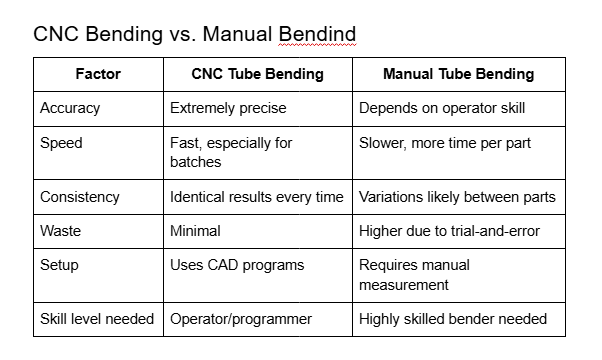 - CNC tube bending offers speed, accuracy, and consistency not possible with hand processes.